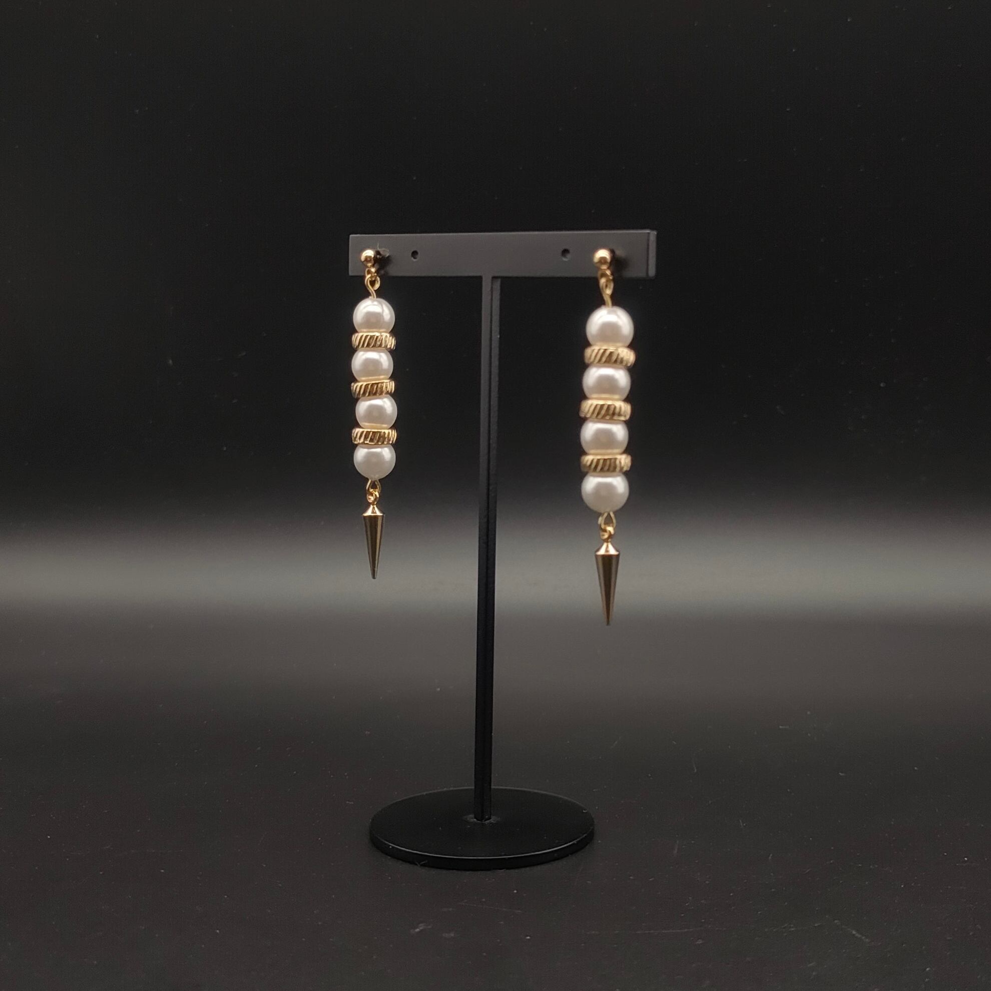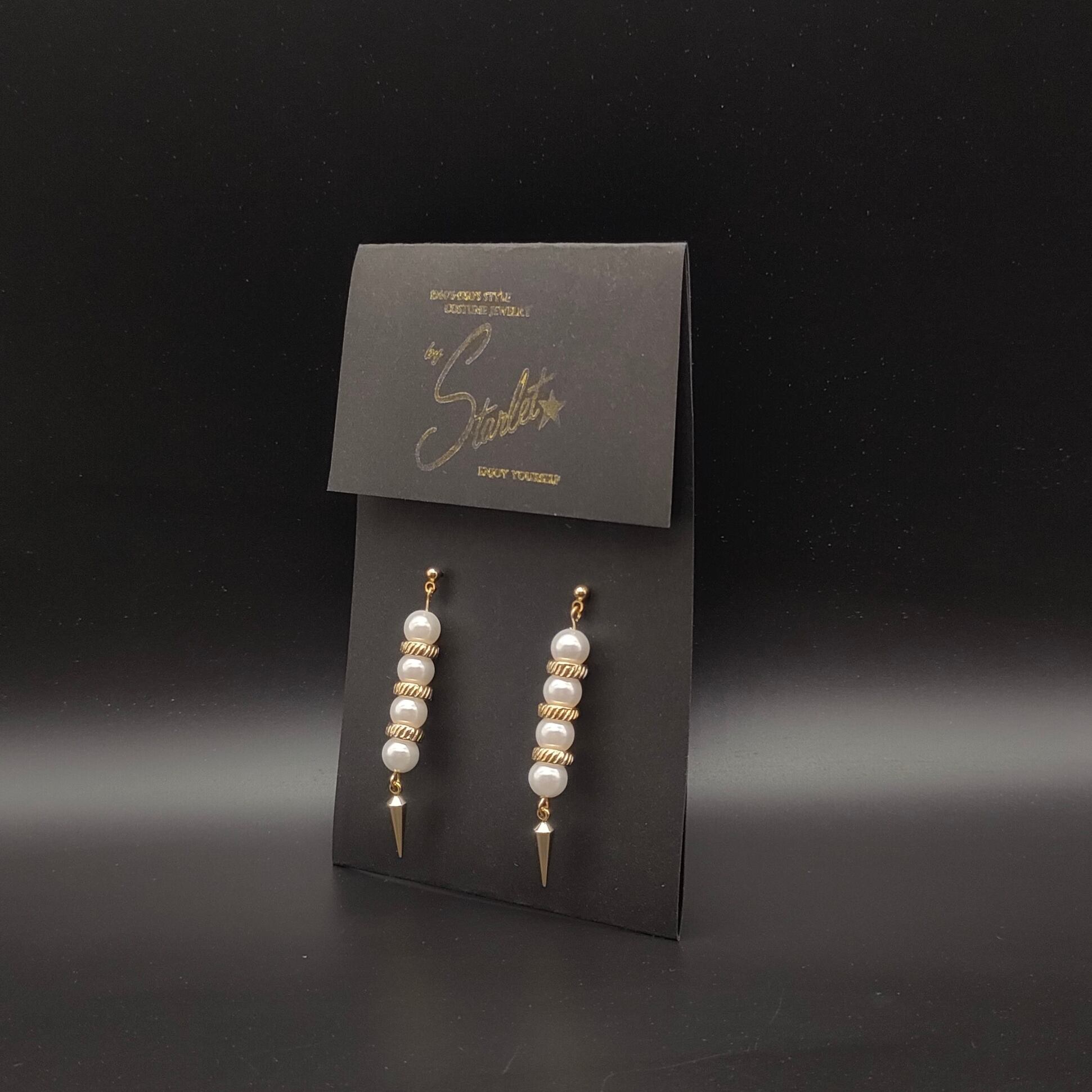 直線的なデザインにゴールドのスタッズが揺れる。