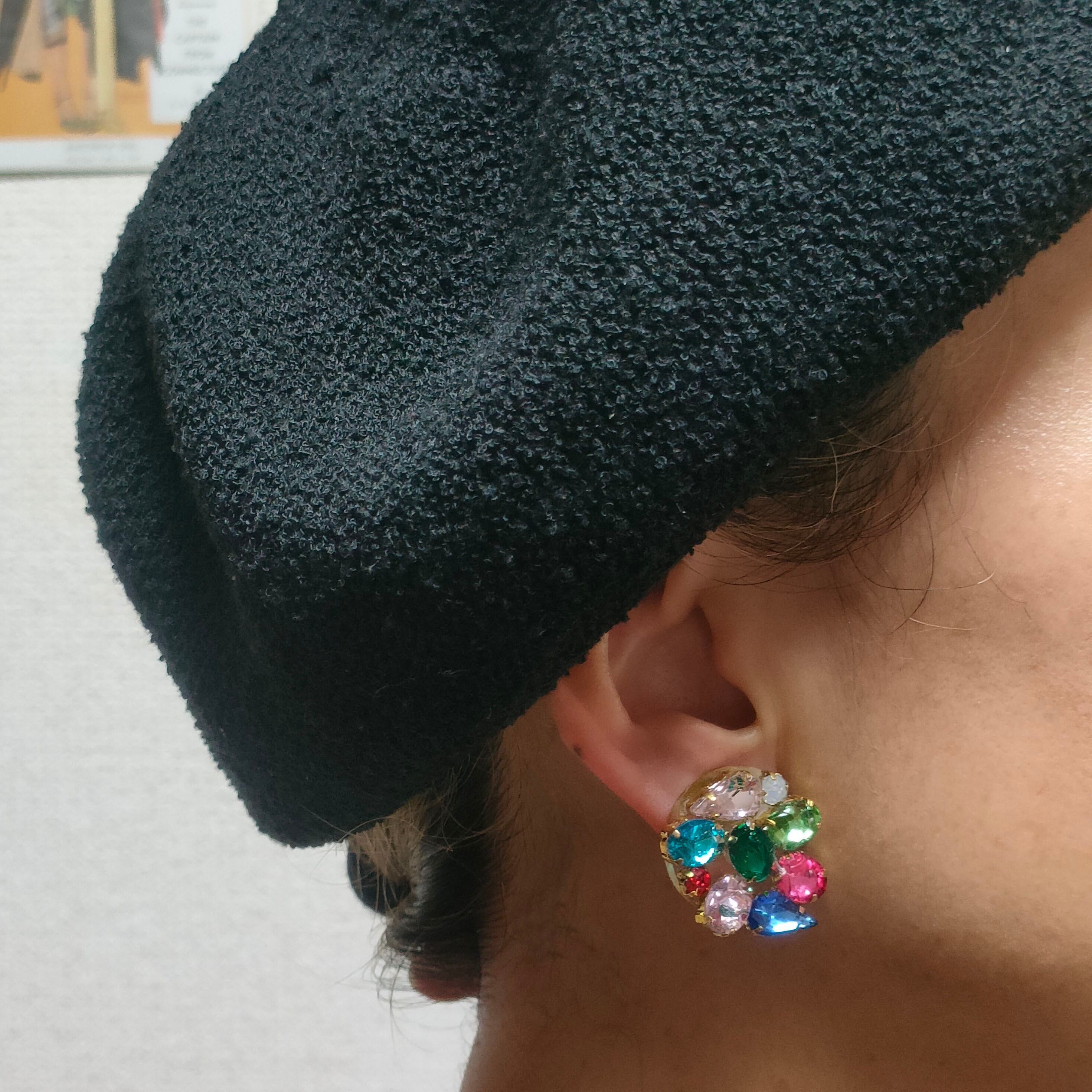 クリップ金具ですので、耳に飾るだけでなくトップスの襟ぐりに、バッグの持ち手に…色々とお使いいただけます。